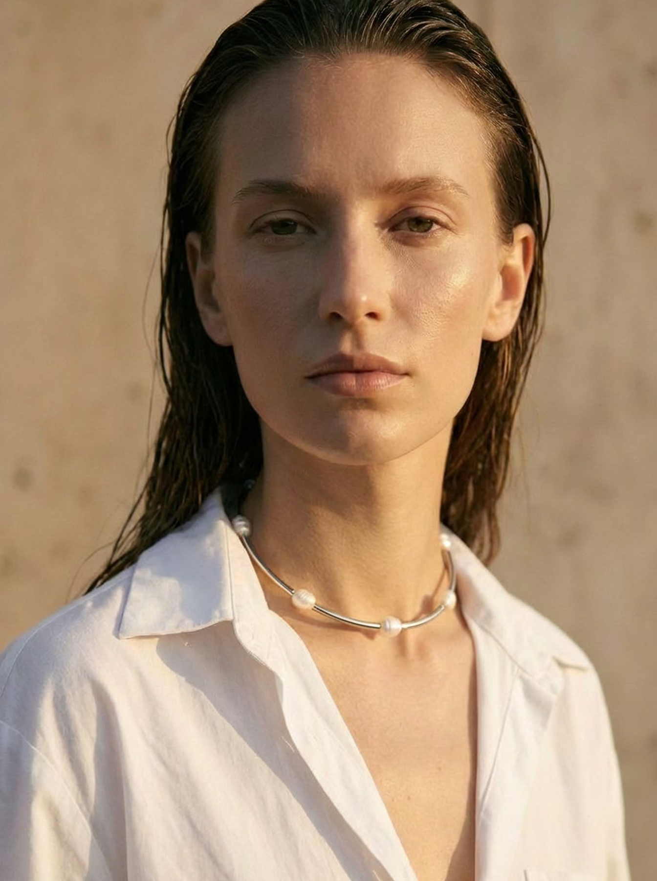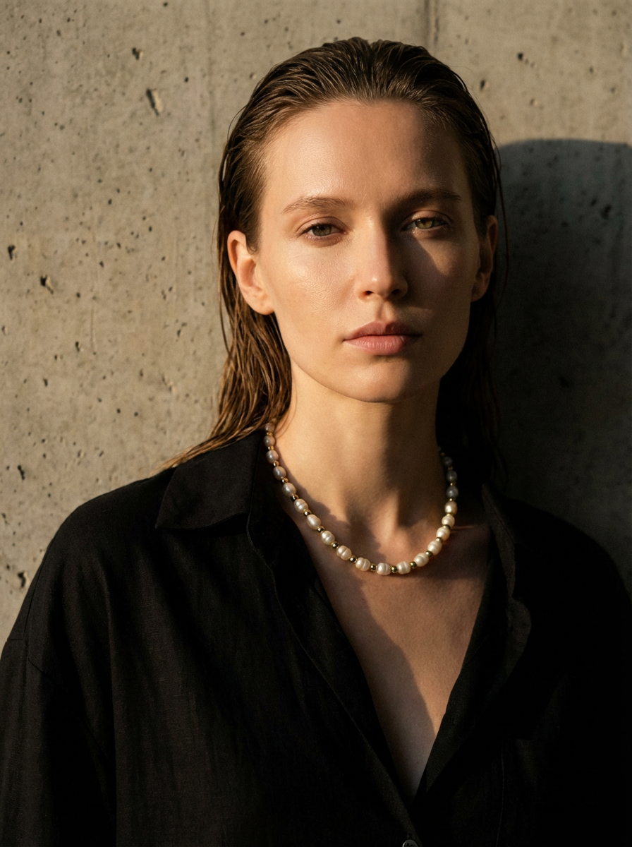 Чокер из натурального черного жемчуга c фурнитурой из серебра 925 пробы